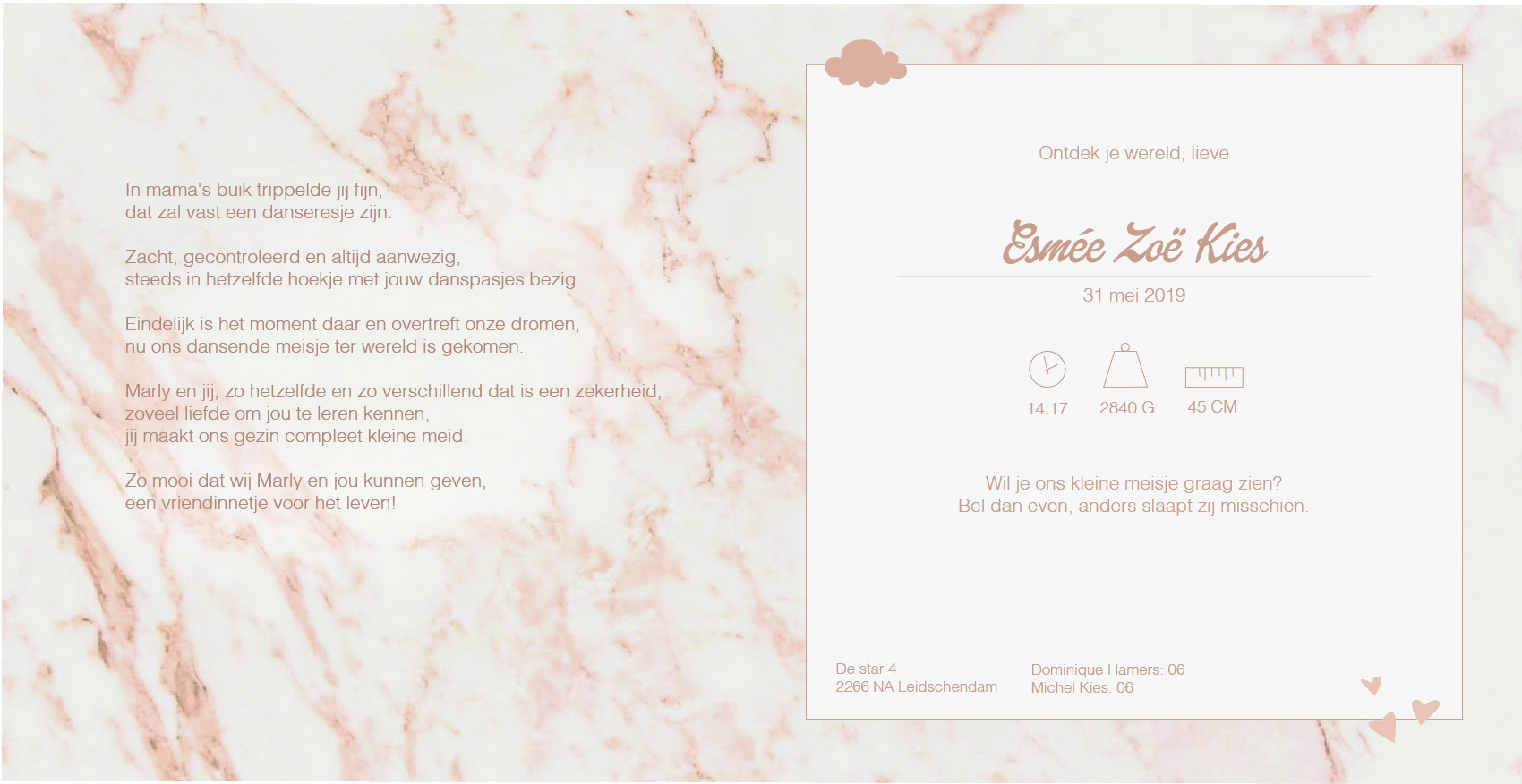 Birth announcement card I designed for Esmée Zoë